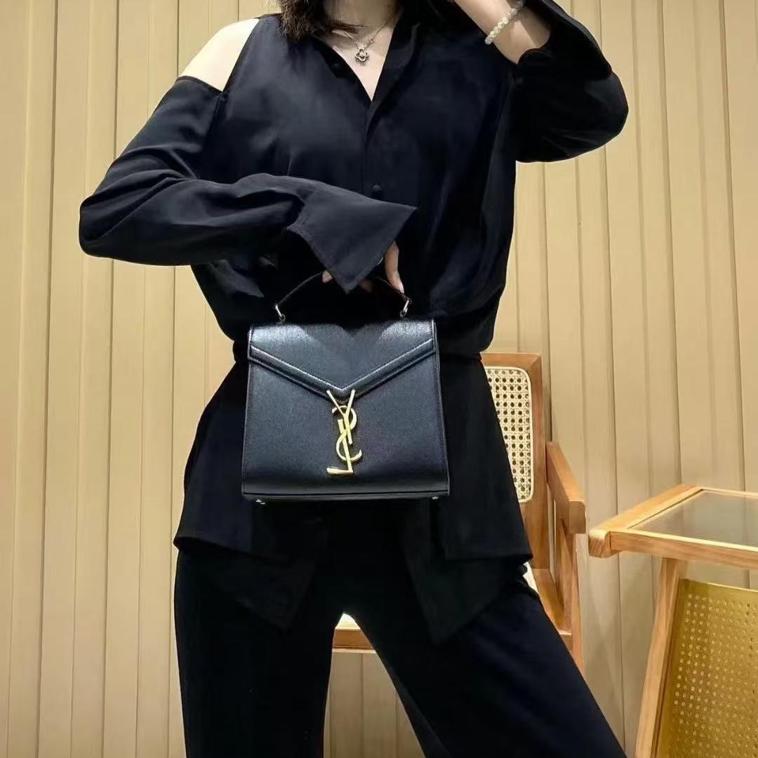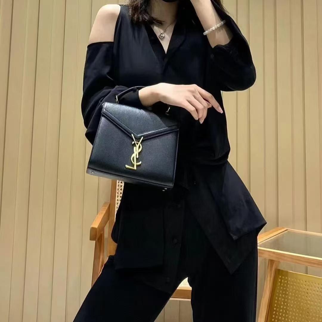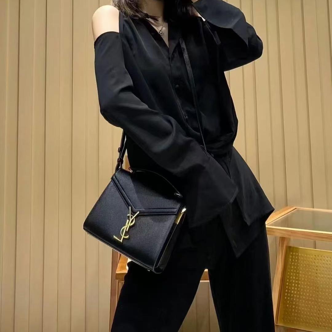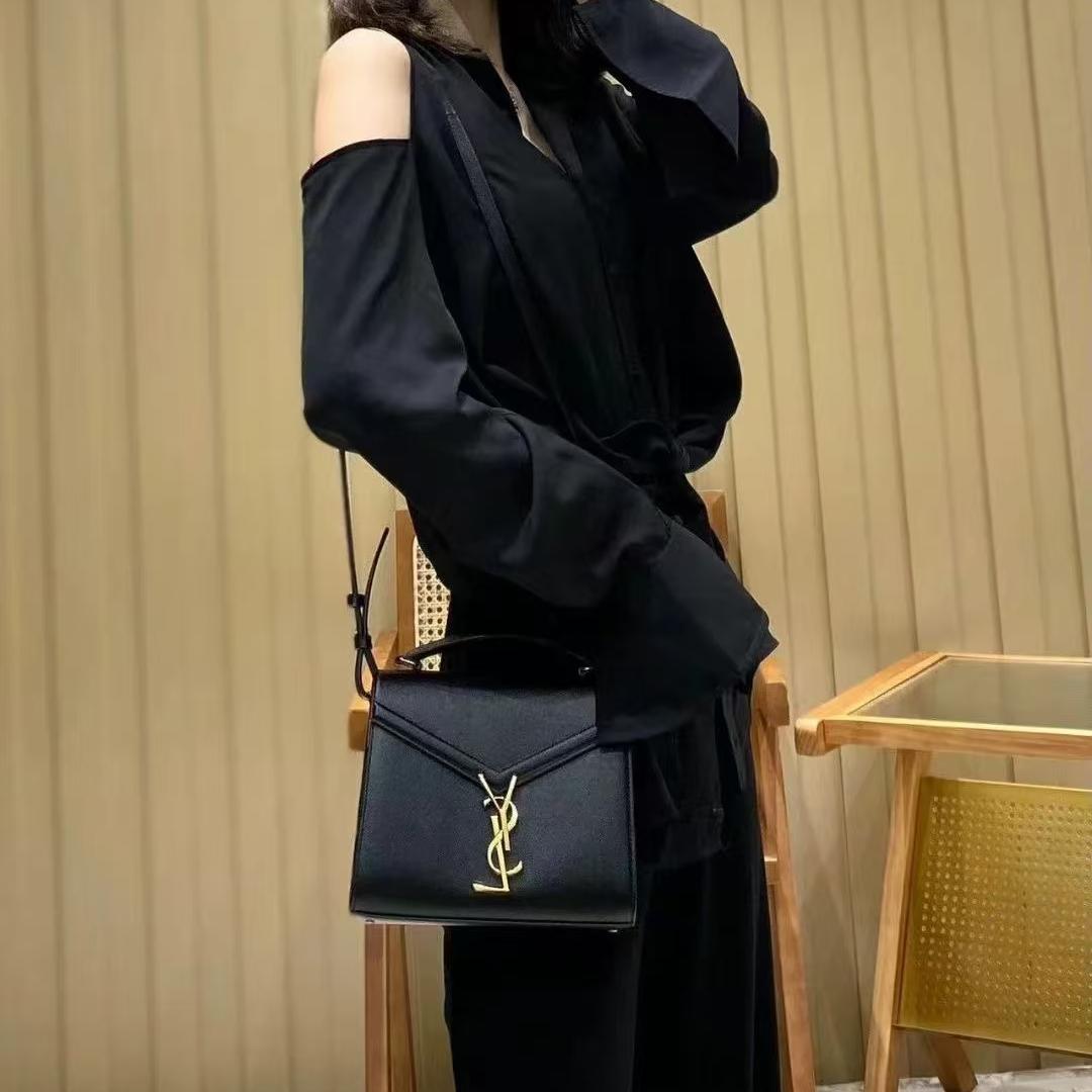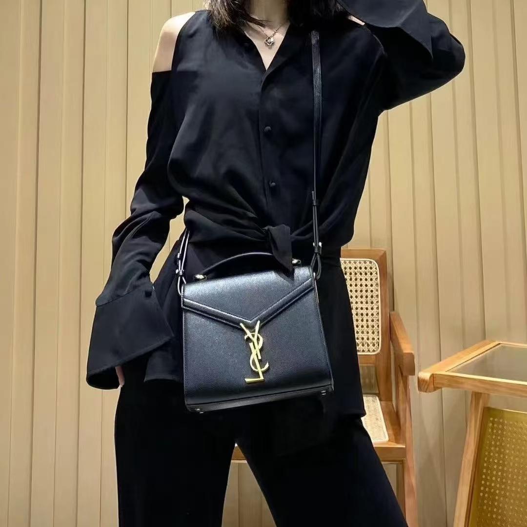 • YSL-Black gold buckle toothpick pattern cassandra mini handbag