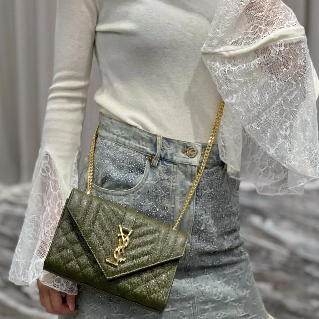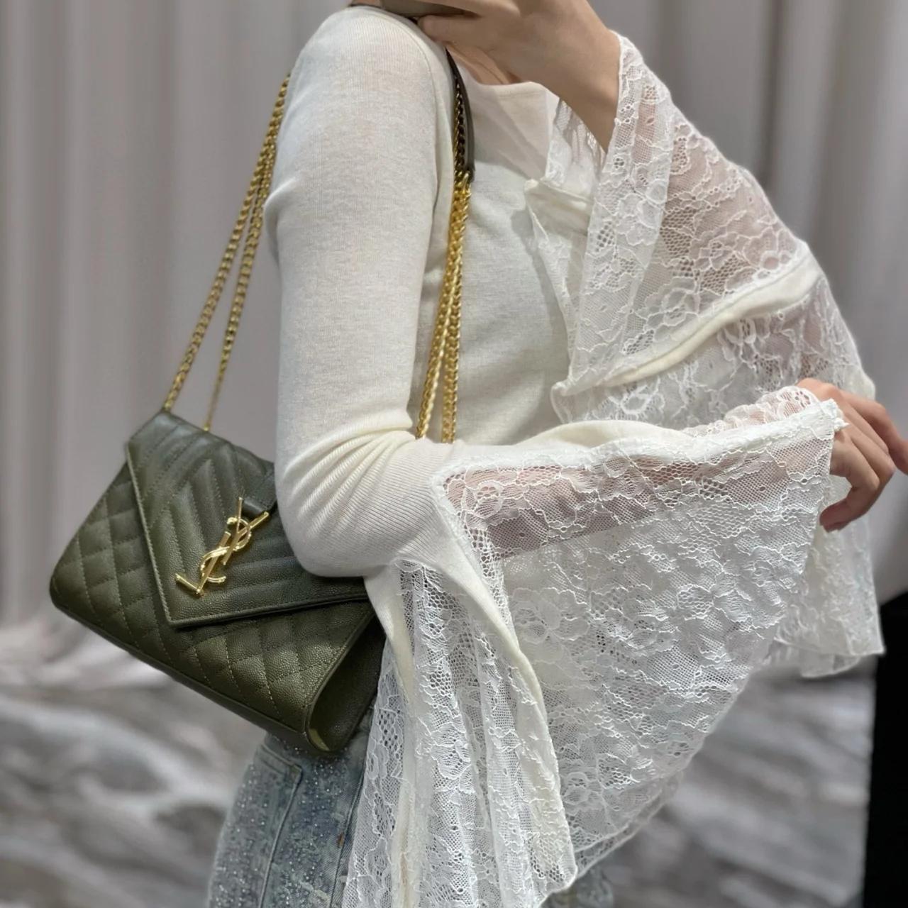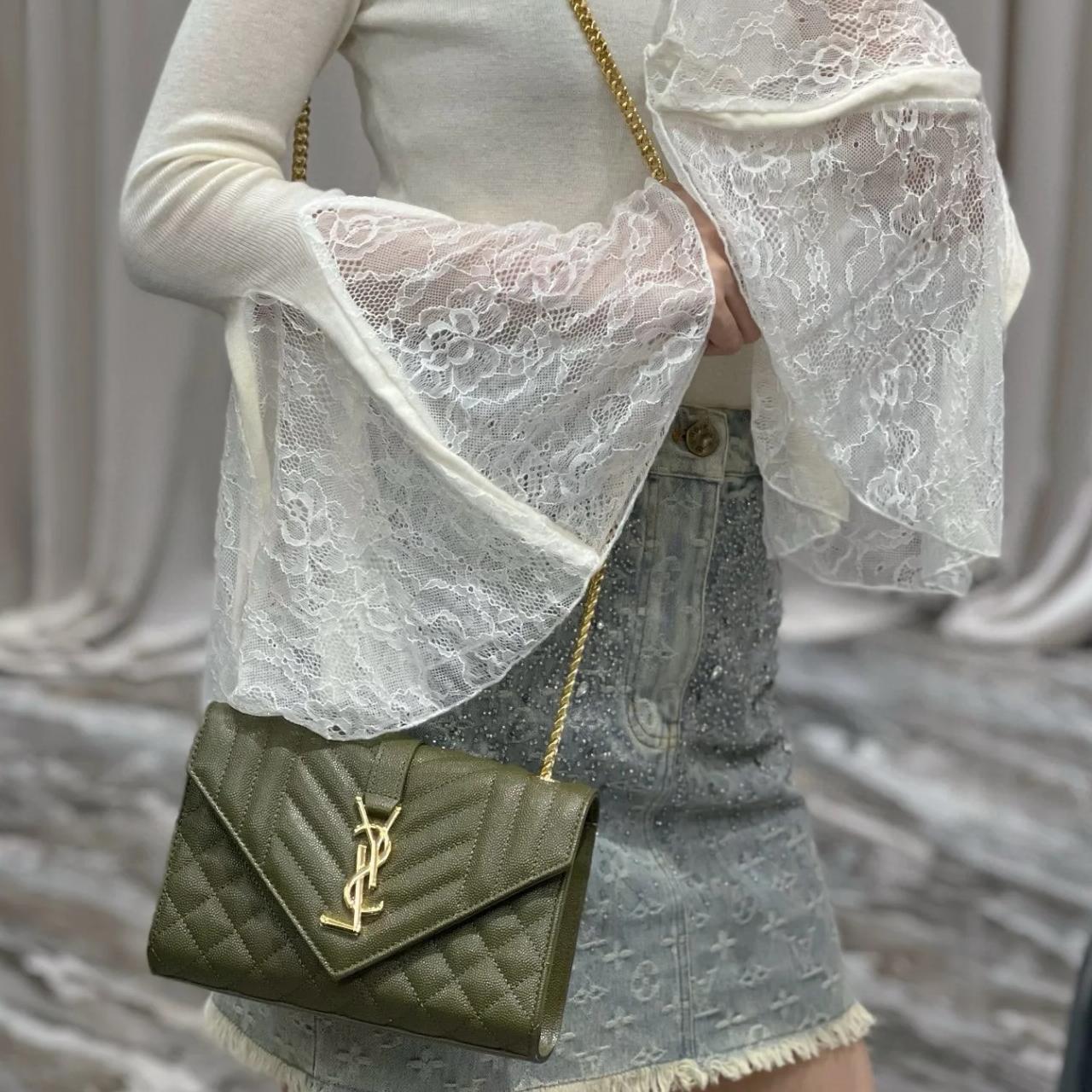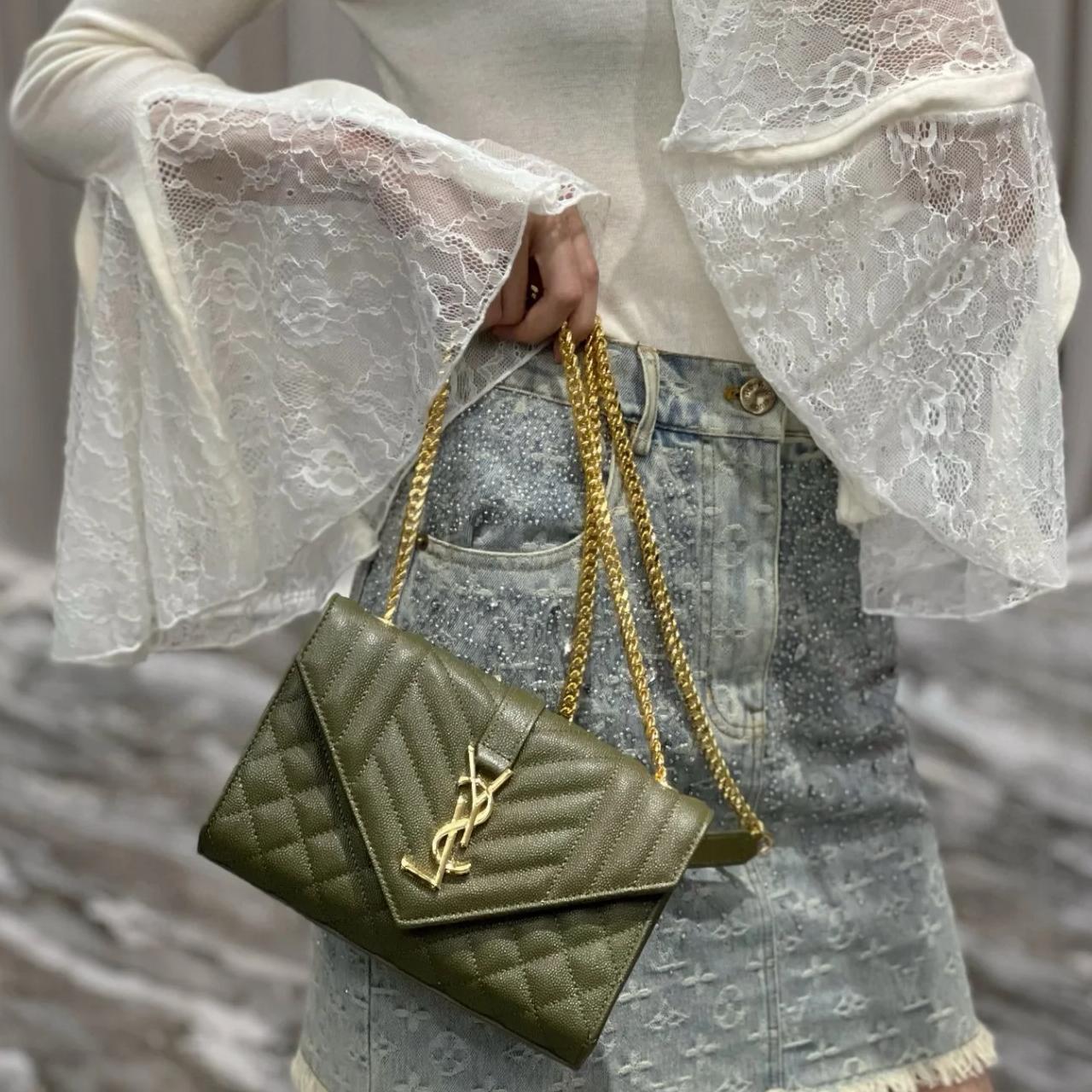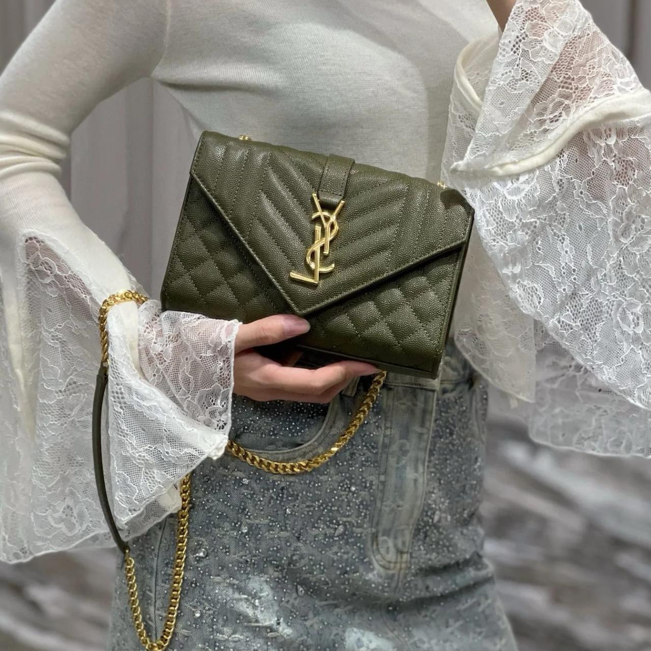 Home / FLAP BAGS / YSL-Envelope Small Grain Embossed Quilted Leather Envelope Bag