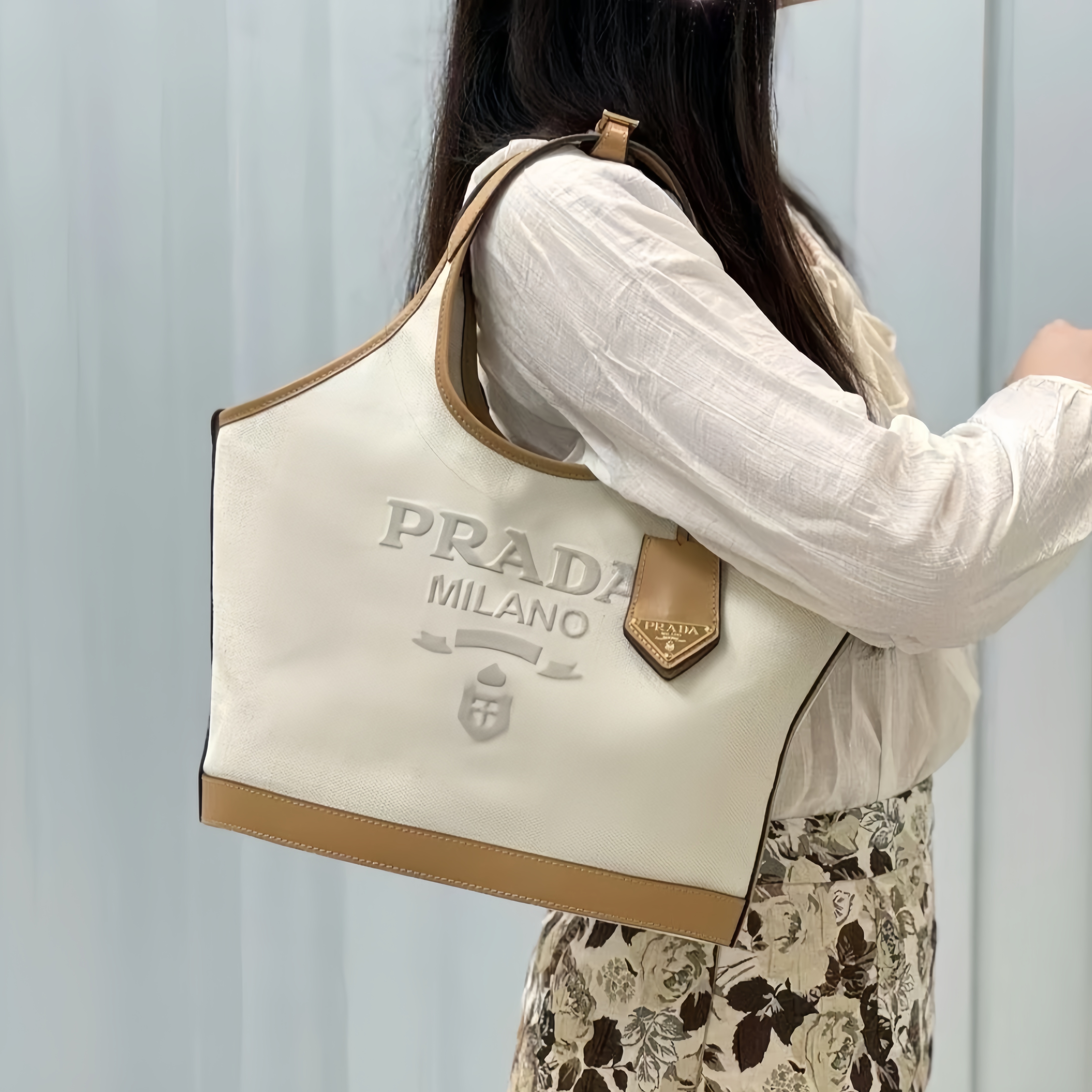 Home / HOBO BAGS / Prada-2024 Summer New Product Linen Blended Leather Tote Bag