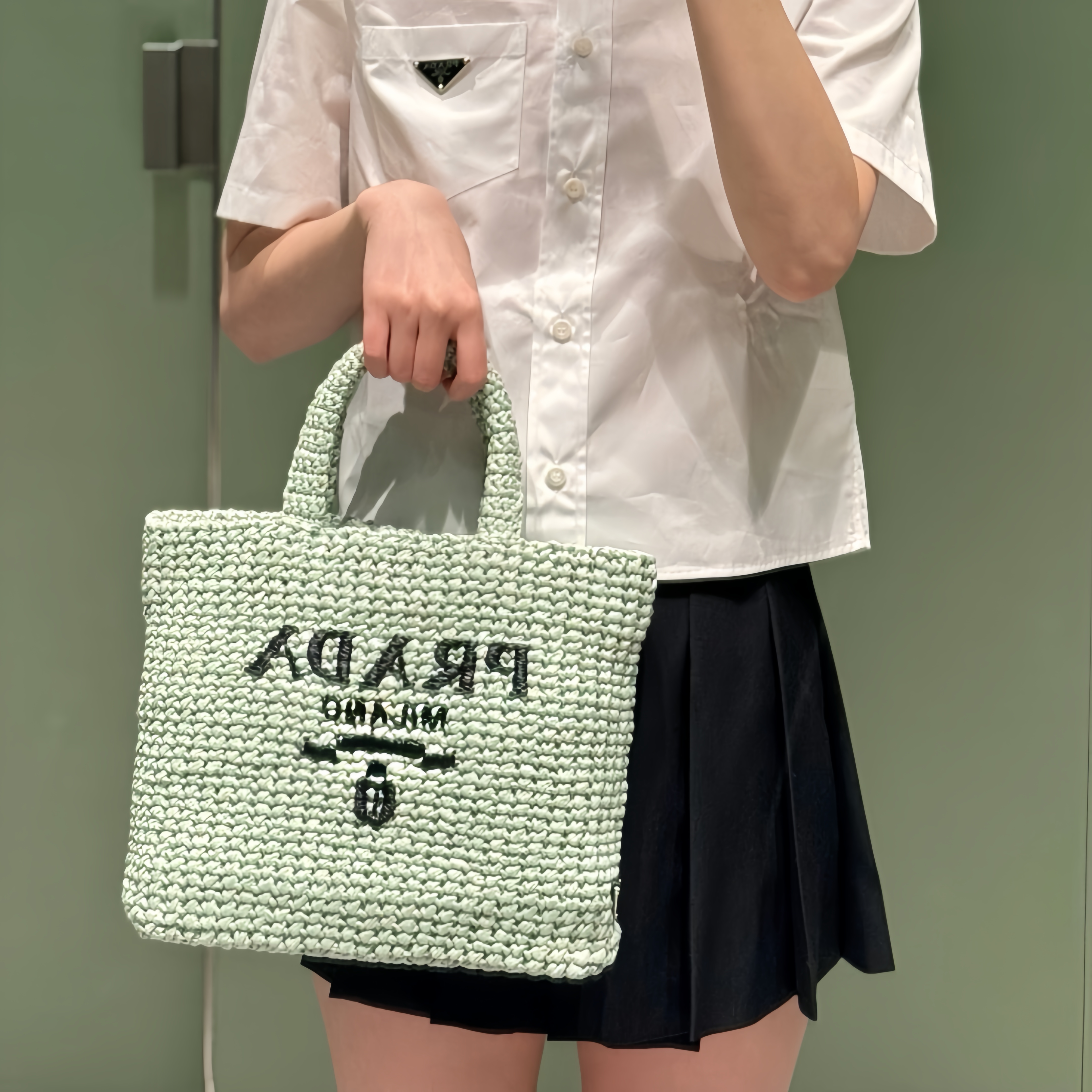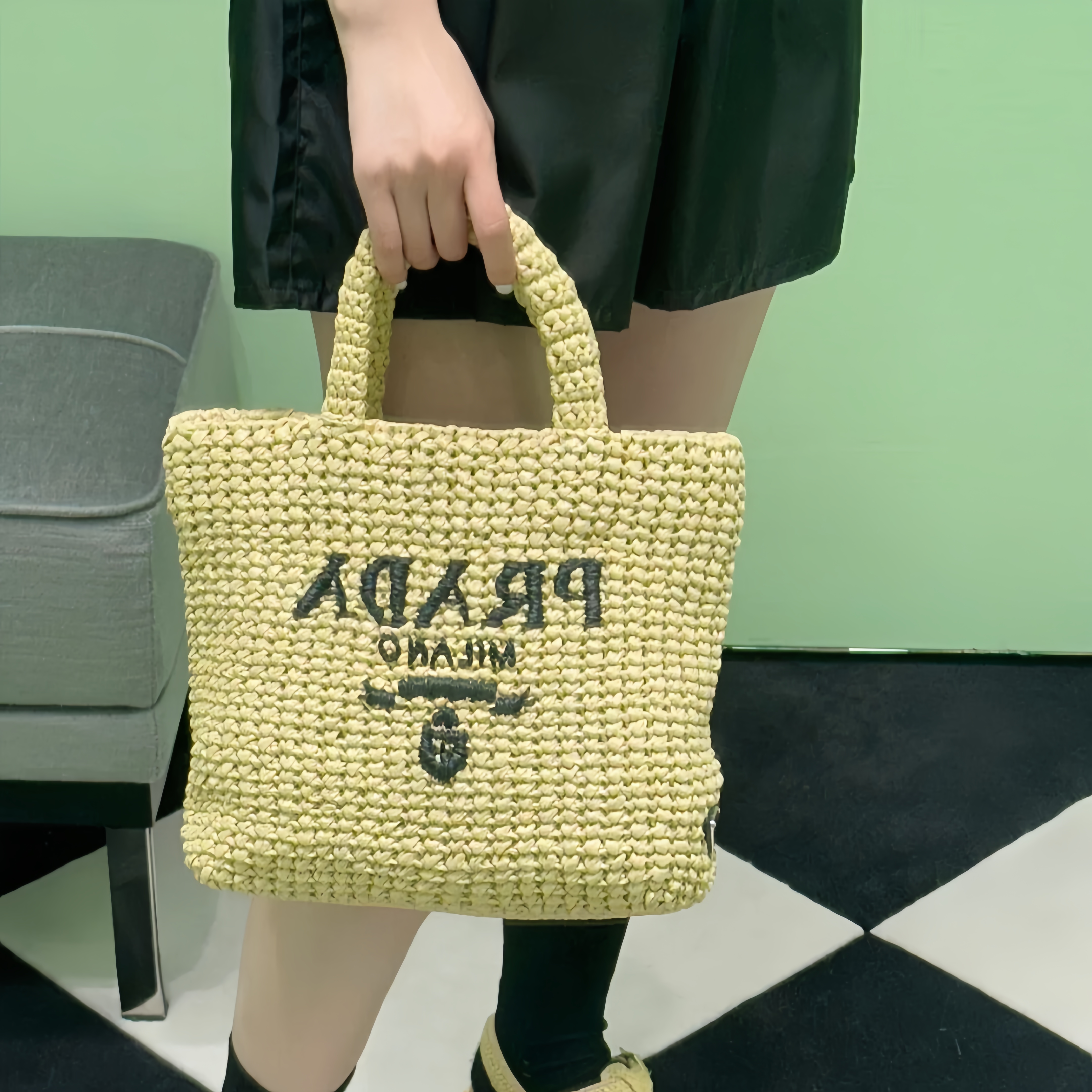 Prada-Imported Lafite Grass Design Fiber Tote Bag