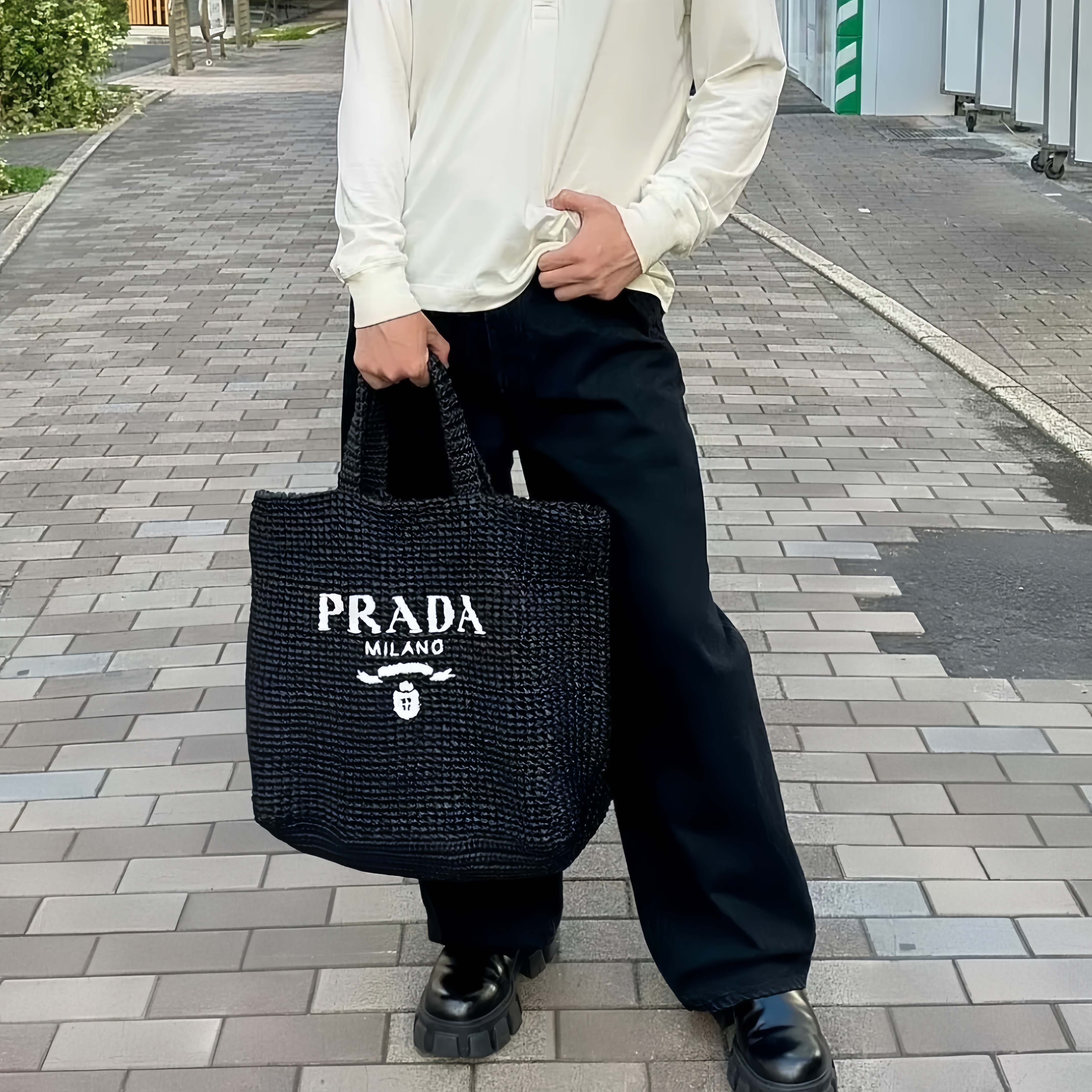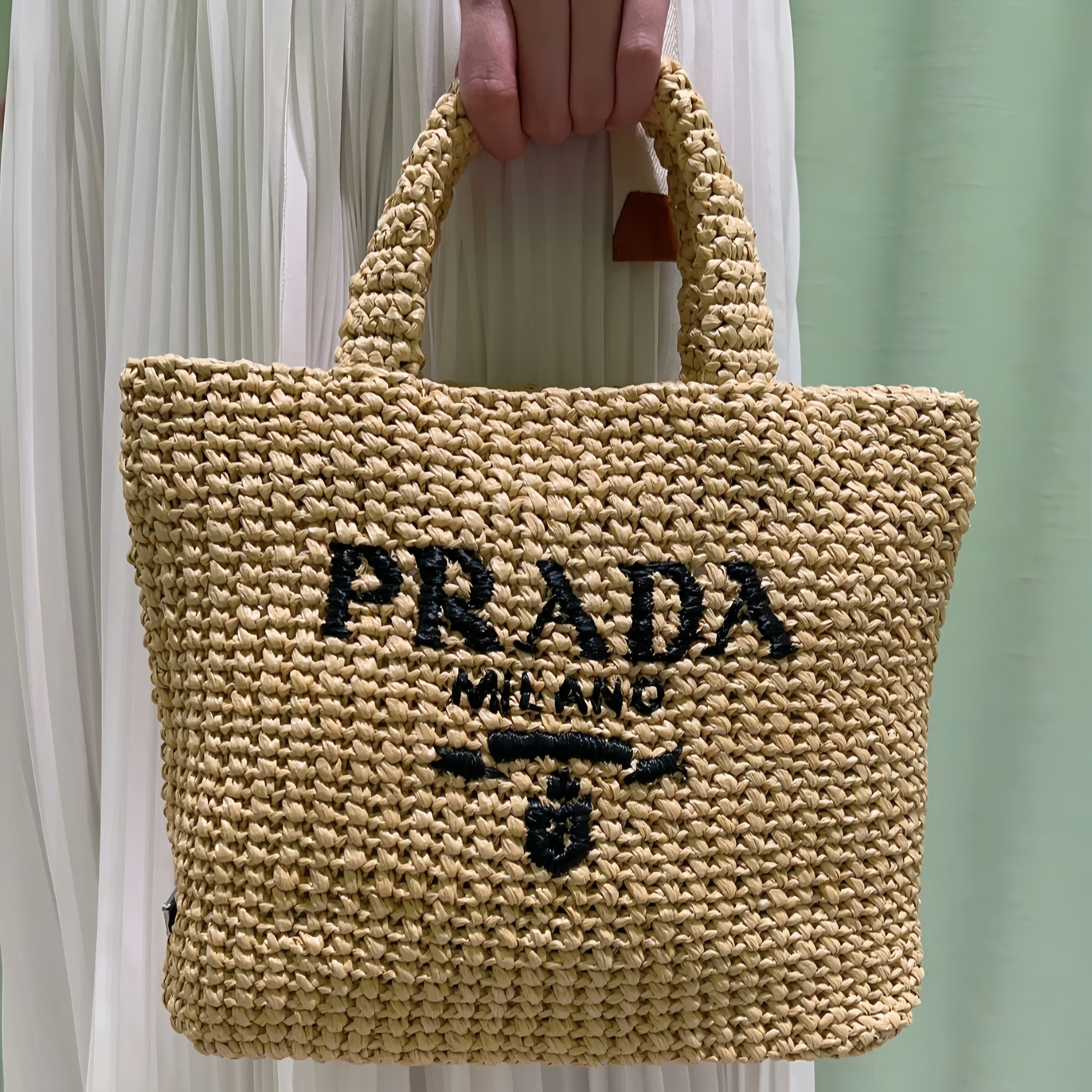 • Prada-Imported Lafite Grass Design Fiber Tote Bag